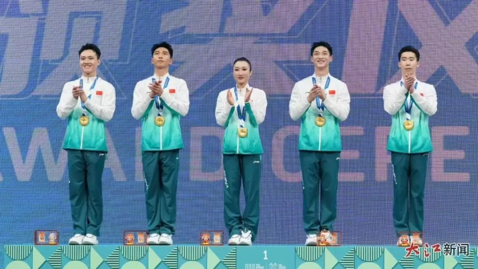 00后小将许彤与团队凭借全场最高难度动作、无懈可击的同步性和极具感染力的艺术表现,以绝对优势征服裁判与观众。这已是他继今年四月2025年国际体联健美操世界杯日本站后,斩获的第二个世界冠军头衔。